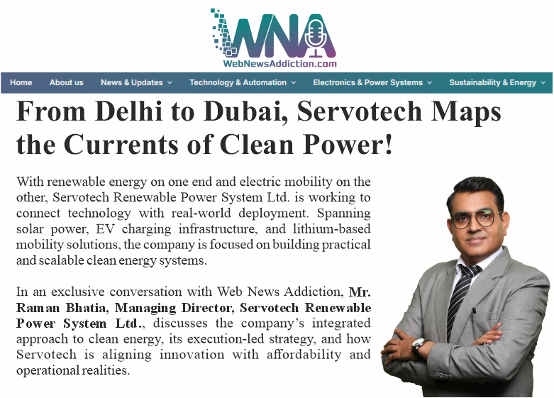 For his relentless pursuit of a greener planet, he has been honoured with the "Global Change Maker in Sustainability Award" by the Prithvi Awards, a testament to his influence in shaping global environmental policy and sustainable business practices. As he leads Servotech’s expansion into the UAE and the Middle East, his focus remains clear to empower nations with smart, reliable, and sustainable energy infrastructures that stand the test of time and climate.