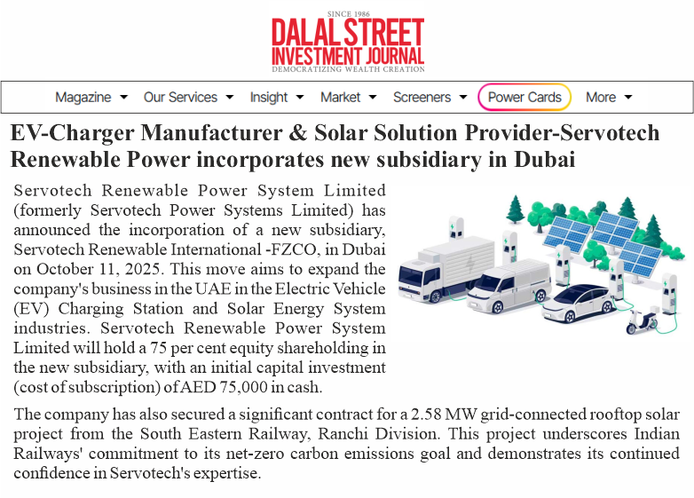 Servotech Renewable International FZCO is a premier clean-energy brand headquartered in Dubai, established to drive the next generation of sustainable infrastructure across the Middle East. As a strategic subsidiary of India based Servotech Renewable Power System Ltd., we bring over 21 years of pioneering experience in power electronics and renewable energy to the UAE. Our mission directly supports the UAE’s Net-Zero 2050 vision, bringing world-class engineering to the forefront of the Middle East’s green transition.